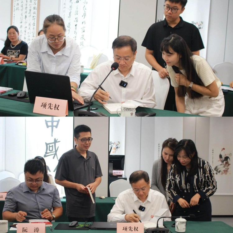 项先权博士分享《新法背景下民营企业家的财产风险和刑事风险》 互动交流热烈赠书环节留下珍贵纪念 在随后的互动交流环节中,与会企业家们就企业经营中遇到的法律困惑向项博士提问请教,现场交流气氛热烈。