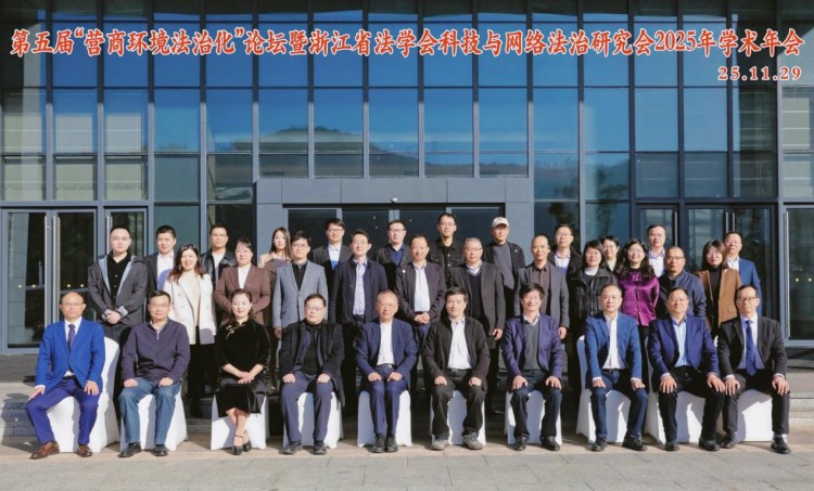 按语:2025年11月29日,第五届“营商环境法治化”论坛暨浙江省法学会科技与网络法治研究会2025年学术年会在台州举办,主题为“人工智能时代营商环境法治化的机遇与挑战”。本次论坛由浙江省法学会科技与网络法治研究会、中国计量大学法学院(知识产权学院)主办,浙江新台州律师事务所、中国计量大学法学院营商环境法治研究中心承办,来自全国各地法律实务部门、高校、科研机构、律师事务所以及企业80多家单位的各界专家学者150余人参加本次论坛。 第十三届全国人大宪法和法律委员会副主任委员,最高人民法院咨询委员会副主任、原副院长江必新、浙江省政府咨询委员会委员,浙江省法学会副会长,省人大常委会法制工作委员会原主任委员丁祖年、浙江大学光华法学院教授王敏远、《江西社会科学》杂志社副主编叶萍、《数字法治》杂志社编辑周利航、中国计量大学法学院教授,浙江省法学会科技与网络法治研究会会长陶丽琴、中国计量大学法学院副院长,副教授冀瑜、杭州师范大学沈钧儒法学院副教授余永祥、浙江新台州律师事务所主任、法学博士项先权等领导专家莅临演讲。